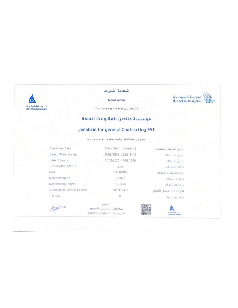 These certificates and accreditations reflect Janahain General Contracting Company’s commitment to local and international standards of quality, environment, safety, and sustainable development.